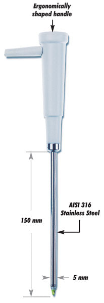 Hanna FC240B er en usædvanlig elektrode designet med en ekstra lang krop i rustfrit stål og en målespids med spids spids. Den er ideel til oste- og mejeriindustrien.