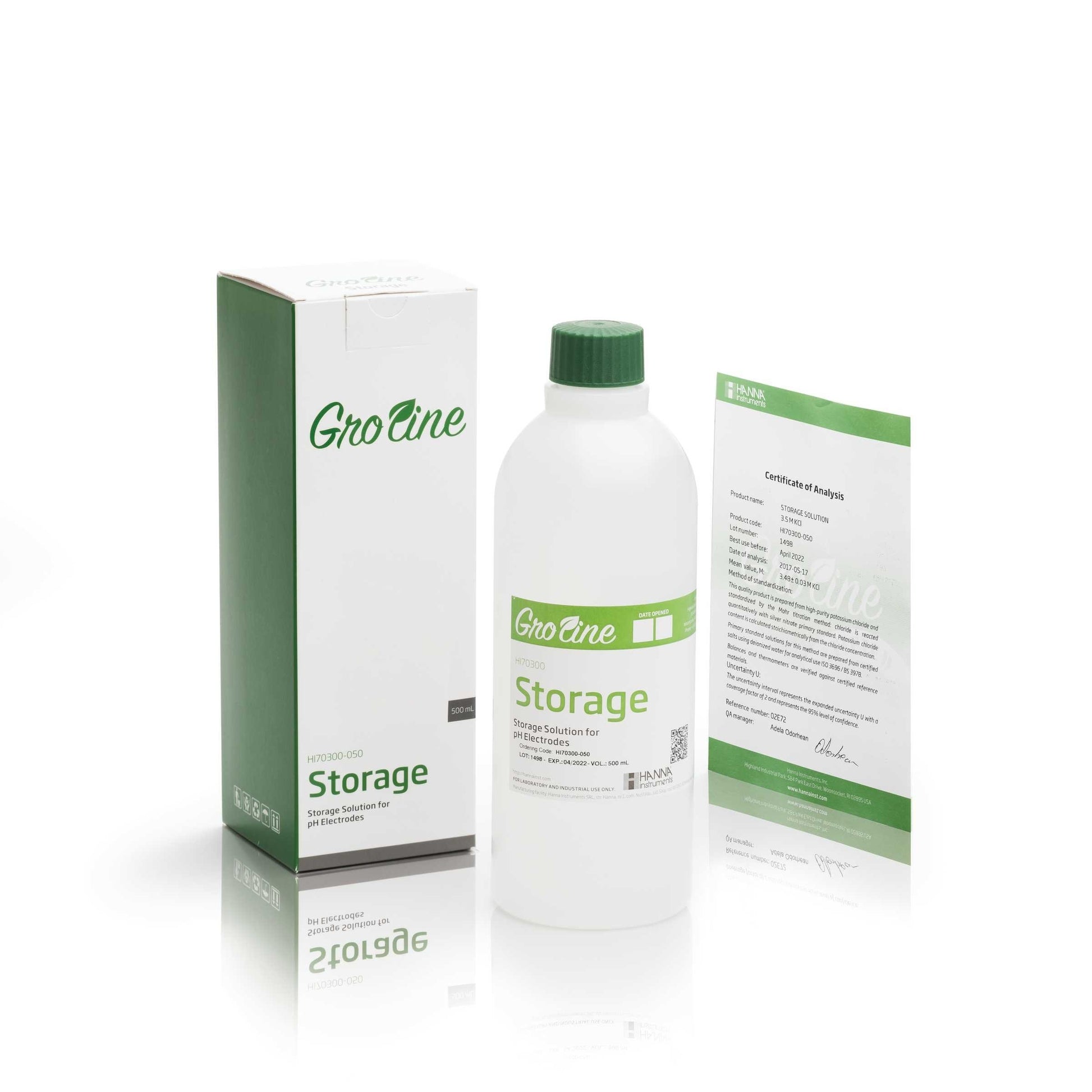 HI-70300-050 is a 500mL bottle of GroLine storage solution prepared with reagent grade chemicals that can be used to ensure optimum performance of your pH and ORP electrodes.