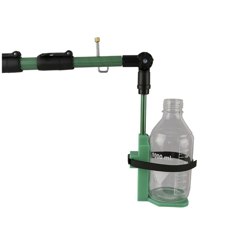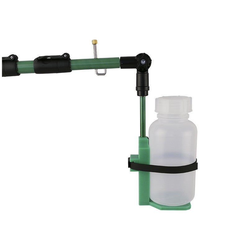 The holder is used together with a bottle (type 250ml, 1 liter or 2 liters) or beaker (max diameter 150mm) and a green telescopic handle (Bottle, beaker or handle not included).