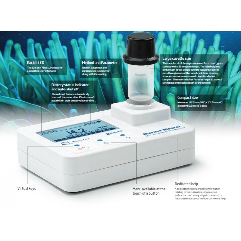 A great kit comprising a compact and versatile Marine multiparameter photometer designed to accurately determine the eight parameters listed. It is suitable for use in the field or Lab/benchtop environments. *The lead image of the kit is for illustration purposes only. Contents of the kit may differ from other photometers in the series.